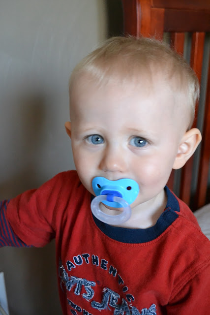 If Logan's paci is not in his mouth...you can bet his fingers will be. Logan is getting some more teeth in so he is constantly chewing on his itty bitty fingers. Poor little guy. I would much rather deal with "growing pains" then heartbreaks that he will have later in life. Right now I can kiss his boo boos away. : )